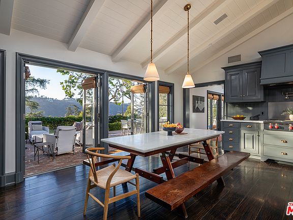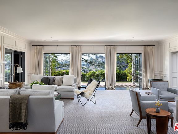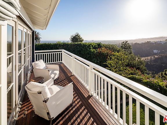 An idyllic traditional estate beautifully situated on one of the most coveted view streets in the city. This residence is a unique sanctuary for those seeking unparalleled privacy with the pulse of Beverly Hills right at their fingertips. A private garden walkway leads to a striking two story formal entry. Light, bright and ideal for entertaining or for intimate gatherings, the gracious formal living room with grand fireplace and floor to ceiling windows is flanked on both sides by the media room and formal dining room. Enjoy the beautifully appointed gourmet kitchen then step through the French doors to discover the joy of al fresco dining set against mature trees, sumptuous gardens, green lawn, tranquil swimming pool and exquisite downtown to ocean views. The romantic master suite features vaulted ceilings and exposed beams, a fireplace and a large private viewing deck also accessible from the master bath. Sleep in luxury. Wake up to luxury. Repeat.