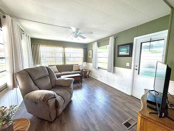 This charming 1971 Skyline Ramada 2-bedroom, 1-bath home features new flooring throughout, fresh interior paint, and a clean shower-tub combo. Enjoy the comfortable screened-in porch, along with a backyard concrete patio and storage shed. Fully furnished and move-in ready, with the option for a quick closing. At this price, this home will not last! ~~~~ This community is less than 5 miles to the Worlds Most Famous Beach, Daytona International Speedway, and Daytona Beach International Airport. Grocery, pharmacy and convenience stores are starting from 1-2 miles away.Colonial Colony South 55+ community hosts social gatherings once a month. Colonial Colony South offers 2 swimming pools and a new fitness center. Also, recreational facilities which include bocce ball, shuffleboard, horseshoes, and a pickleball court. The community building features a dining area, 2 pool tables, and a library. City water, city wastewater service, garbage and trash removal, lawn mowing, lawn pest control services, and basic cable TV service. All of which are included with the lot rent. This community requires a credit score of 675 and background check. Lot Rent is $859 per month. Don't miss out on this home, schedule a showing today! MOTORCYCLE FRIENDLY - Pet policy: 2 pets up to 25lbs (upon approval) *Listing data & Land lease/Lot rent is deemed reliable but is NOT guaranteed accurate.*