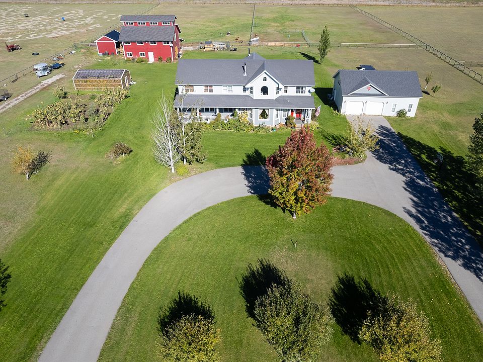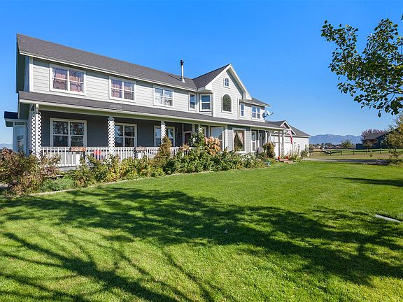 Modern American farmhouse with 7 bedrooms, a den, and 5 baths complemented by two expansive living areas and a large country kitchen with a walk-in pantry. Additional amenities include a spacious theatre room and a 2-bedroom, 1-bath guest apartment situated above the garage. Offering an ideal blend of town and country living, this home features fenced acreage suitable for horses and livestock, a three-stall barn, dedicated shop area, chicken coop, hay storage, a garden, firepit, and an impressive greenhouse that is heated by both natural gas and solar energy. The residence is located just minutes from town, providing tranquil surroundings, panoramic mountain views, and convenient access to Glacier National Park, Glacier Park International Airport, Kalispell, Whitefish, and North 93 Shopping.