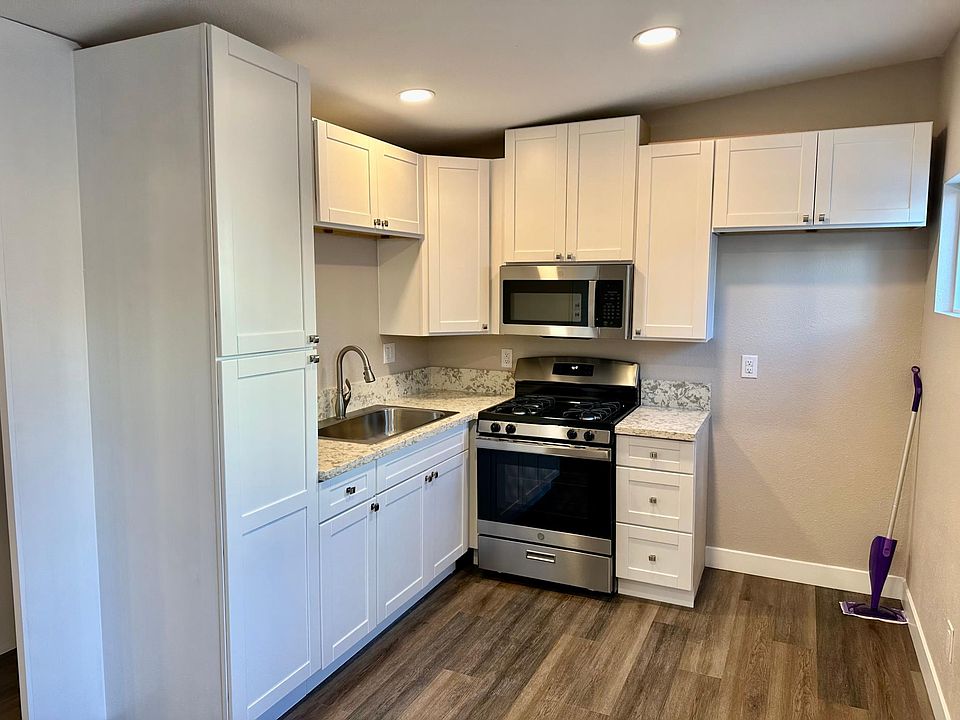 This freshly painted, newly renovated light and bright studio is now available for lease! Featuring durable laminate floors, new full-sized kitchen and bathroom with a shower and tub. Located near all commodities and shopping, you have everything you need! Petsmart is nearby for your pet - pets are loved here! The yard is shared with your non-attached duplex neighbor and you have a designated parking spot as well as plenty of street parking. Washer/dryer hookups inside your unit! Don't miss out on this affordable lease - it won't last long. One-year lease.