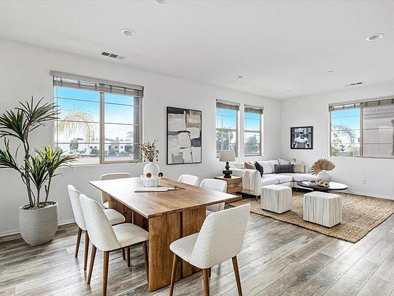 VA approved! This beautiful rare end-unit home in a gated, Oceanside community offers the perfect mix of comfort, style, and convenience. Just minutes from the beach, shopping, and dining, you’ll love the easy access to everything North County has to offer. Inside, you’ll find a bright, south-facing open floor plan with panoramic views and plenty of natural light. The kitchen features modern appliances, lots of counter space, and a large island that’s great for cooking or entertaining. A first-floor bedroom and bathroom provide added flexibility for guests, multigenerational living, or a private home office. Upstairs, the spacious primary suite comes with a walk-in closet and private bathroom. Additional bedrooms are versatile - perfect for kids, guests, or work-from-home space. Step outside to an oversized, professionally designed patio yard, complete with a fountain, built-in BBQ, sink, and propane fire pit great for entertaining or relaxing. Additional features include a tankless water heater with quick hot water, an epoxy garage floor in the two-car garage and dual-zone A/C with a smart thermostat for comfort and efficiency. The community offers fantastic amenities, including a pool, BBQ and picnic area, and three playgrounds, along with well-kept common areas.