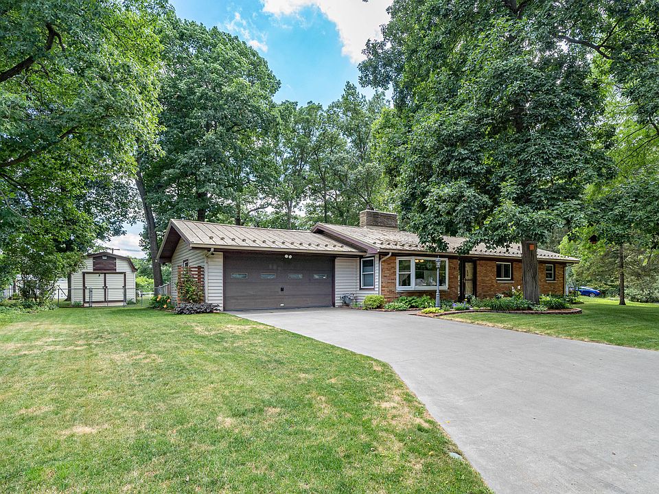 $194,900: Pride of ownership abounds in this Westlake Woods Subdivision ranch style home. The sellers have not taken any shortcuts to make this property move in ready for the next owners. Updates over the years includes: energy efficient triple pane windows, metal roof for the house & maintenance-free 12x20 shed(w/double layer floor), kitchen(center island, snack bar & built-ins ), whole house Generac generator, Kinetico water softener, Rheem tankless gas water heater, etc. Other highlights include: 3 BRs, 2 baths, 2 car garage w/insulated walls & ceiling, 2 fireplaces(1 burns wood & the other one burns gas), large storage building for the wood supply, 3 seasons room w/sliding windows, fenced back yard(w/access to Avenue A), full basement w/rec. room & cul-de-sac setting.
