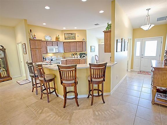 What a gem! Sparkling, beautiful Camellia in designer section of Duval. Bond paid. Landscaped back yard affords privacy, enclosed 9x28 lanai with awning. Sought-after split plan bedrooms, king-sized master suite with double closets, raised double vanities and separate large designer shower/commode room. Third bedroom used as an office (no closet) with laminate flooring. What a great kitchen! Oodles of cabinets, large breakfast bar, breakfast nook, spacious inside laundry with cabinetry and set tub. Located South of Lake Sumter Landing near all newest recreation centers, Truman Center, family pool, walk to pool and quick golf ride to Lake Sumter Market Square. Surrounded by executive courses: Sandhill, Turtle Mound, Truman, Roosevelt, Bogart, Bacall. Taxes are $2,400 plus $524 non-ad valorem taxes per year. No bond. What a bonus! Zoysia sod, color-coated driveway, volume ceiling, open design.
