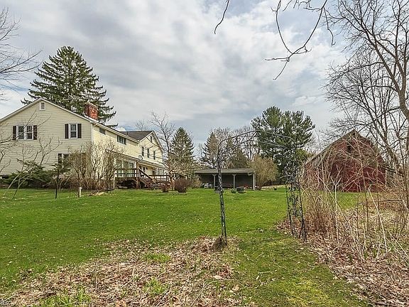 Beautifully maintained center hall colonial Farmhouse on 20 acres with oil and gas well used to heat the house. Gorgeous hard wood floors. Rooms in this home are all of good size. Open foyer with beautiful hard wood floors. The massive living room with fireplace can accommodate all your entertaining needs. The home library adds much charm with built in book shelves, crown molding, and French doors. Kitchen has expansive cabinetry for storage, large island, and leaded glass lighting. Dining room is large enough to seat 12+ for large dinners. Large familyroom looks out on to a 27x11 deck and spacious back yard. Screened-in porch is available through the library. Upper level features 5 large bedrooms, and an office w/built-in book cases. Each bedroom contains its own sink area. Outdoors, you will see a 3 car detached garage with porch for entertaining, the 1930's 4 stall barn is approximately 30x50. There is a gas/oil well on the second parcel. Currently the house uses the gas well to heat source fuel. Too much to mention