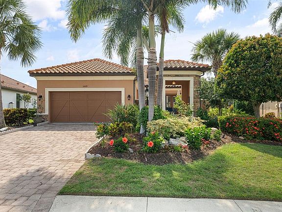 Stunning Trevi Model in Esplanade Golf and Country Club, Lakewood Ranch! This meticulously maintained 3-bedroom, den, 3.5-bath gem is for sale with no mandatory golf membership. Boasting a chef’s kitchen with top-line cabinetry, stainless steel appliances, built-in oven, five-burner gas cooktop, upgraded flooring, and elegant crown molding, plantation shutters, dry bar, and courtyard with fountain. The office/den features a built-in desk, workstation, and feature wall. Enjoy main-level master and guest suites with en-suite baths, plus a second floor with a bonus media room (wet bar with refrigerator), private additional room, and full bath. Over $280k in upgrades, including a jaw-dropping $150k heated saltwater pool with mosaic inlay, floating invisible edge, spa, multi-level planters, yoga area, and outdoor kitchen. Nestled in a world-class golf community with a practice range and competitions, residents enjoy reduced golf rates. Unwind at the poolside Baja tiki bar, resort-style pool with lounge chairs and cabanas, or torch-lit fire pit evenings—perfect for family and friends. Savor the incredible weather with cooking classes, wine tastings, and first-class dining at the culinary center. Plus, access to a spa, fitness and wellness center, pickleball, and tennis courts! Just an hour from international airports, with world-renowned Siesta Key beaches, Saint Armand Circle, and downtown Sarasota’s European flair. Don’t miss the uniquely special weekly farmer’s markets in Lakewood Ranch and Sarasota. Features central vac, private backyard, updated pool heater and remote, brand new AC (2025)—luxury living awaits!