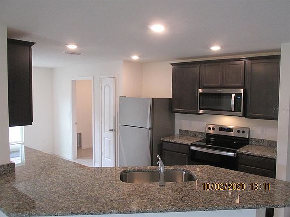 Newer home for rent in Phase 2 of gated Sand Ridge Community. Open & spacious floorplan will welcome you home. The kitchen overlooks the great room & out to the backyard. It boasts wood cabinets, all SS appliances, granite counter tops, & a small dining area too. Split plan is perfect to keep some privacy. Ceramic tile throughout. Only the bedrooms have carpeting. Full size washer & dryer set are for tenant convenience only. Large privacy fenced in yard. All this & the lawn service is included too. Max of 2 pets will be considered. Aggressive breeds are not permitted.