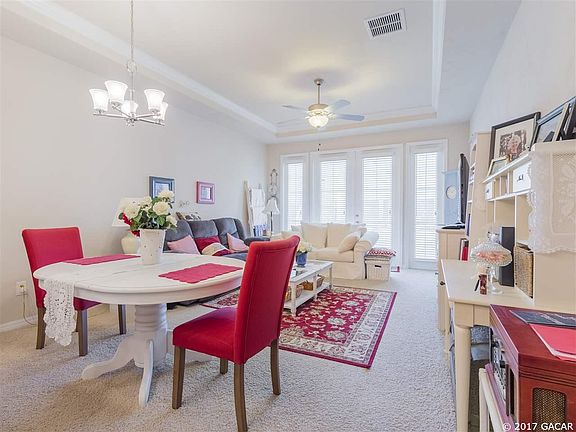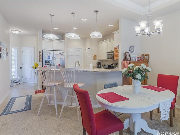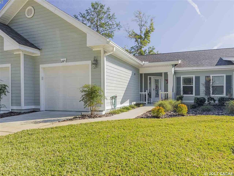 Enjoy the Convenience of maintenance free living in this 2 year old, 2 Bed 2 bath home in Villas of West End. Natural Light floods the living space and master bedroom of this adorable Villa. Upgraded White Cabinets, granite look countertops, and stainless appliances gives this space a traditional look with modern appeal. A raised breakfast bar adds additional seating space for quick meals or entertaining. Sliding glass doors lead from the family room to a screened porch overlooking a well maintained shared green space, chat with your neighbors or enjoy some quiet time in the Florida sun. The master suite is very large with an equally spacious master bathroom with tiled walk-in shower. The layout is open and accessible for all ages and walks of life. You can see the pool and tennis courts from the covered front porch, look to the right and the mailbox is just feet away, and a very short walk to the end of the street leads straight into the community clubhouse. A short car ride west is Jonesville with shopping and Restaurants or head east and access all that Gainesville has to offer, as well as I75 access. A new Stand Alone ER is right outside of the entrance to the neighborhood as well. Life made Easier in Villas of West End!