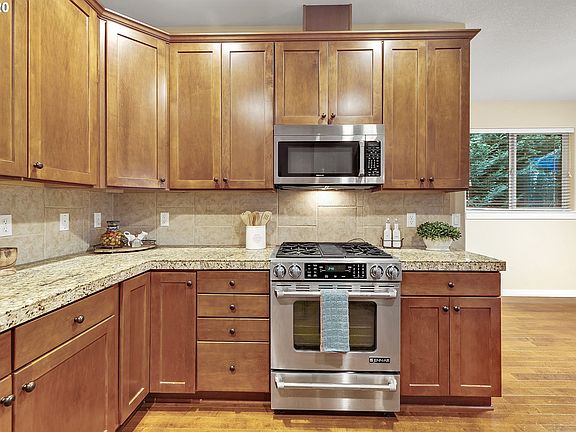 Like new single level on large lot, quiet street of lovely homes. Vaulted ceilings, open floorplan, terrific kitchen w/hardwood floors, stainless steel appliances, Levolor blinds, air conditioning. Beautiful custom master shower with dual shower heads, tile, river rock. Close to Fanno Creek Trail, Woodward Park, Dirksen Nature Park. Easy access to freeways, Washington Square. Covered deck, fully landscaped fenced yard with fruit trees