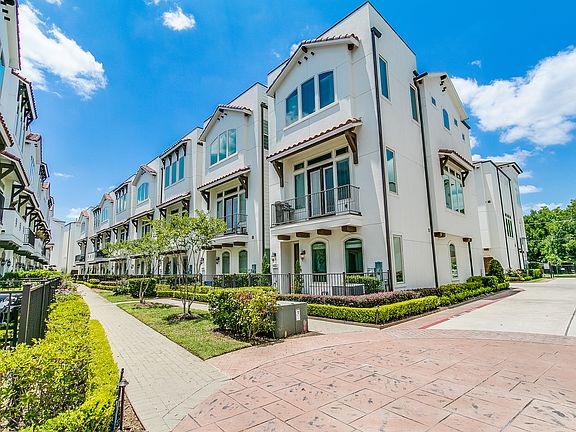 Beautiful Mediterranean-style, freestanding home nestled in an immaculately landscaped, gated community. As an end unit, there are extra windows allowing in lots of natural light. Rooftop deck with amazing downtown views. Conveniently located near Memorial Park, the finest eateries in the Heights and Rice Military with easy access to main highways. Short commute to the medical center, downtown and the Galleria. Luxurious details include soaring ceilings, open floor plan, large windows, quartz counters, dry bar with wine fridge, balcony off living room and designer finishes. Master suite features dual sinks, soaking tub, separate shower and oversized walk-in closet. This is a quiet zone, no train horn in this location. No flooding, high and dry. Guest parking available inside and around the complex.