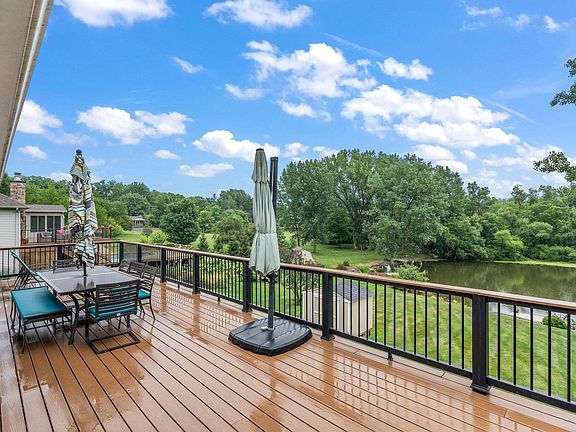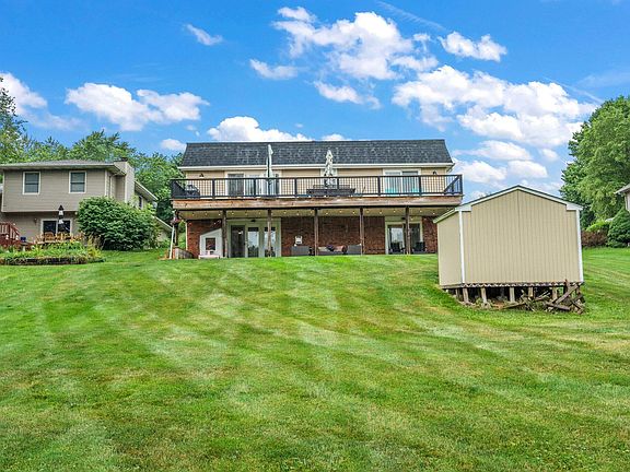 Stunning Lakefront Ranch ....Move right in to this beautifully remodeled and meticulously cared for 4 bed, 3 bath home. Completely remodeled, open concept kitchen boasts luxury vinyl plank flooring, ample cabinet space, stainless appliances, tile backsplash, island, quartz counters, and dining area. Kitchen opens up into a nice sized living room with access to sprawling deck with patio below, and gorgeous lake views. Main bedroom features a remodeled private 3/4 bath with double vanity & walk in tile shower. Walk in closet with custom closet system and sliding doors out to the deck complete the main bedroom suite. 2nd bedroom upstairs along with a remodeled full bath with full tile surround. Walk out basement provides a second living room with gas fireplace, 2 large bedrooms, a combination 3/4 bath & laundry area complete with utility sink, and plenty of storage space. Completely remodeled from top to bottom in 2019. New roof installed in 2021 & new windows in 2023. Spacious yard provides a storage shed and dock on private lake. Oversized 2.5 car garage, quiet street, & low taxes make this home a must see!