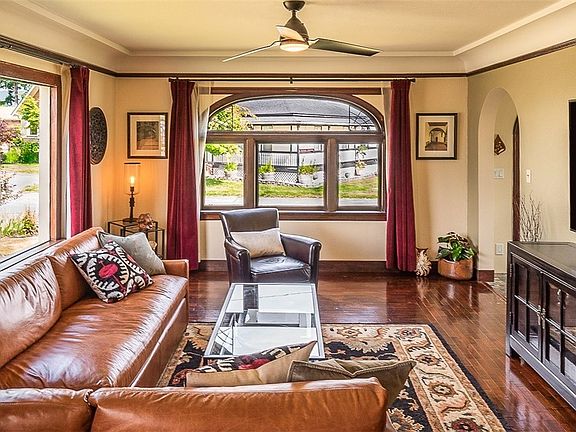 Stunning 1930's Art Deco Craftsman in Downtown Enumclaw. This 2710 sq.ft. home recently went through a meticulous restoration. No expense was spared on the kitchen with custom cabinets, high-end appliances, tile floors and island with granite counters. Beautifully restored original hardwoods. The second story is home to the master retreat. The all-new spa-like suite offers a large soaker tub, tiled shower, heated floors and AC. Fully finished basement w/ bar, 30+ bottle wine rack and half bath.