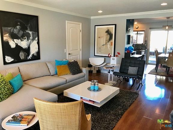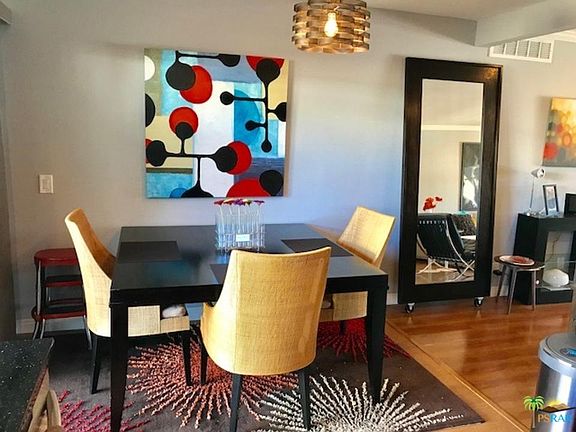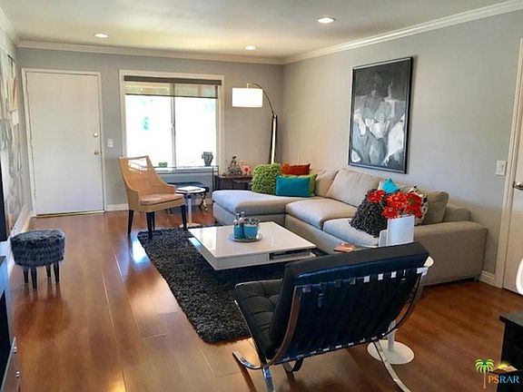 Two Bedroom/Two Bath one level unit on the ground floor! Crown moldings and designer touches make this condo special! Fantastic remodeled kitchen features glass tile back splash, custom cabinets, ceramic wood tile floor, and stainless appliances. Updated baths include jet tub/shower in one and stall, tiled shower in the other. A full-size washer/dryer is included! Beautiful outdoor patio has a BBQ, additional storage, and landscaping. Covered parking is directly connected to the patio! Perfect for a full timer or vacation get away! The unit next door is also for sale?just consider the possibilities for a larger getaway in central Palm Springs. Hermosa Villas has a showcase resort pool and spa with mountain views. You are minutes from Downtown and close to shops, restaurants and parks!