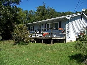 Hunters Paradise & nature galore.Wonderful 49.25acres mostly wooded w/tons of poplar & oak.4-wheel trails to top of mtn.3BR,1BA ranch w/barn,2 additional mobile homes('91 Clayton,'83 Fleetwood-can be bought or removed,both have sep well/septic,Clayton ready to live in or use as rental)Massey Ferguson tractor & bushog to convey.Grt investment opportunity.Replacement windows,4 other bldgs on proprty