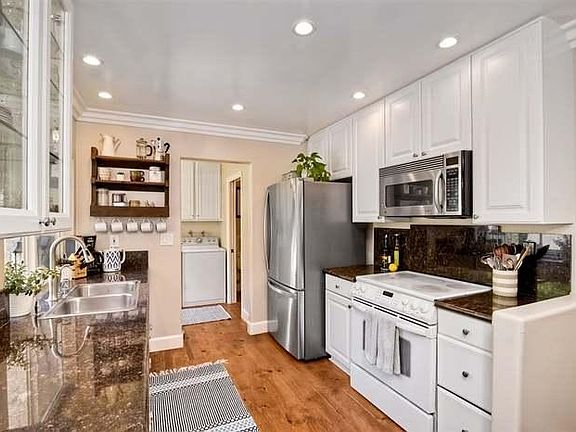 RECENTLY RENOVATED: 3BDR/1.5 bath 1300 sqft townhome in sought after Cardiff by the Sea Park Place Bluffs Community. Completely Updated spacious, quiet end unit w/ large outside fenced private patio, laundry room, two reserved parking spots, pool, jacuzzi, private off leash dog park, and nature trails in the private community. Walk to schools, Seaside market, and less than a mile to Cardiff State Beach. New wood floors throughout the entire home replacing all carpet seen in any photos, freshly painted throughout the house. Brand new stainless appliances, gas fireplace, new fixtures, bonus area bathroom vanity in master bedroom, lots of storage. Don't miss this rare opportunity at a great price! Flexible showing time. Call or text today:) 1 year lease. Owner pays trash, water, and HOA dues. Pets allowed with $500 refundable deposit, no smoking, or subletting.