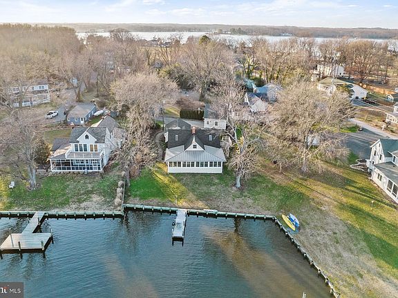 Jaw-dropping sunrises! Fantastic neighborhood! Seller motivated! PRICE IMPROVED! Spectacular views & your own pier! Peaceful & absolutely charming EXPANDED cape with incredible Bay views, over 2,000 SF or living space, expansive glass enclosed sunroom, and detached 2-level, 2-car garage on large lot! Watch the ships go by & see the Bay Bridge ( as well as eagles, ospreys, & purple martins!) from the glass enclosed porch, private dock & over 100 feet of waterfront protected shoreline! Open concept , eat-in kitchen with great room, built-ins, large bay window, center island, loads of counter space, granite counter tops, pantry, and more. Brazilian cherry hardwood flooring in large living & bonus room, with stone wood-burning fireplace & mantle, spiral staircase to upper level to 3rd bedroom, plus bonus room & sitting area with access to deck, and wooden beam ceilings, skylights, cedar closet, loads of built-ins (possible 4th BR /office & or dressing/ sitting area. Primary bedroom with wainscoting, beamed ceilings, plantation shutters, walk-in closet, glass-front french door closets & ceiling fan light fixture. Mudroom w/laundry off kitchen. Plantation shutters, wainscoting, chair rail, sunlit rooms and beamed ceilings add to the charm of this sweet home! Tons of storage & space to add another bath! Addition circa 2005. Anderson windows throughout. HVAC & roof is only 2-3 years old. 2-car garage with 2nd level (circa 2012). All of this situated on a .49 acre lot! Enjoy the tranquil waterfront lifestyle & jaw-dropping sunrises!