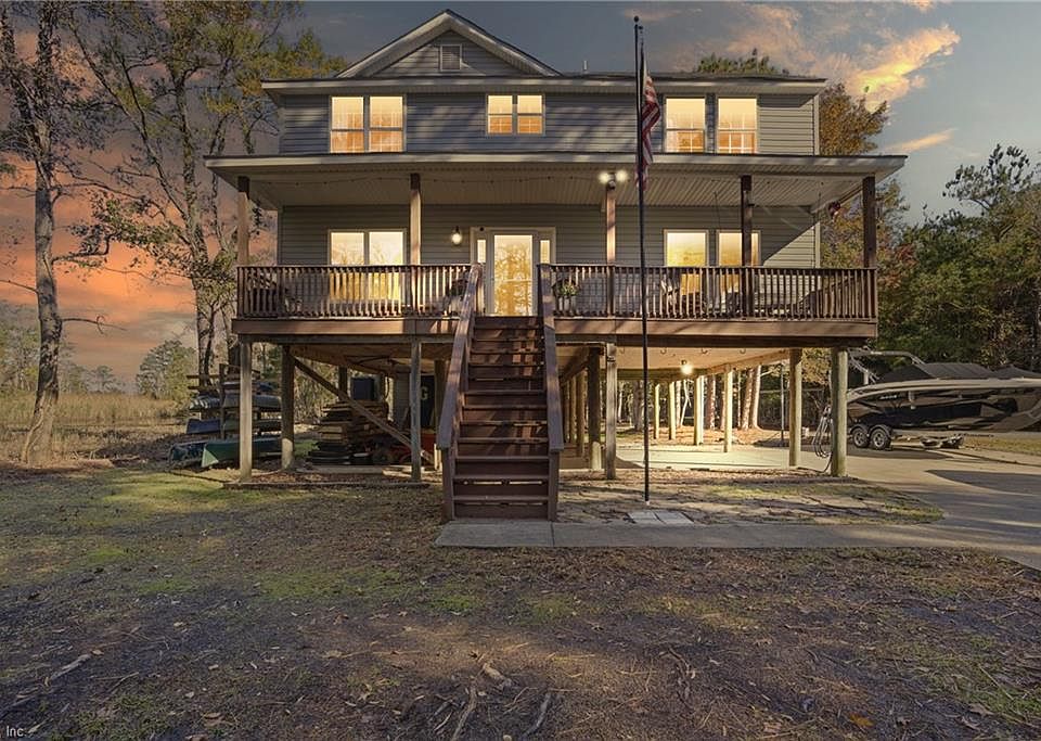 Escape to your own private retreat in the heart of Pungo! This 4-bed, 2.5-bath home with additional flex/office space is completely surrounded by Back Bay National Wildlife Refuge, offering total privacy, water views, and a peaceful natural setting. Enjoy canal access to Back Bay—great for kayaking, canoeing, or paddleboarding. Relax on the covered front porch or the expansive back deck and watch the herons, egrets, ducks, and even otters! Conveniently located less than 5 minutes from the Pungo stoplight, 10 minutes to Sandbridge Beach, and 15 minutes to Red Mill shopping and dining. Detached shed with electric and mini-split makes a perfect man cave, she-shed, or hobby space. Country charm meets coastal living—this is a rare Pungo gem!