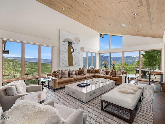 Nestled among the serene aspen groves in the exclusive Mountain Star community, this beautifully crafted mountainside retreat effortlessly combines the epitome of contemporary architecture with an innovative floor plan, capturing unrivaled views from each corner. Designed by renowned KH Webb Architects, 1268 Paintbrush features a grandeur great room with floor-to-ceiling wraparound windows, a recently remodeled kitchen with top-of-the-line La Cornue, True, and BlueStar appliances, an elegantly appointed morning room with wet bar, and a lavish family room offering an abundance of natural light. Step outside to the expansive patio complete with a gas firepit and heaters, creating the perfect space for year-round entertaining in this stunning high-alpine setting, with commanding views in all directions. A lower-level hot tub allows for relaxation while soaking in the sweeping views of the valley floor to the untouched Buck Creek Gulch, and White River National Forest. The home also features a 3-car garage and a separate showroom den, outfitted with a luxury kitchenette. Other amenities include a well-appointed exercise room, an additional family room, private offices, and a stately hallway for showcasing artwork. Just 10 minutes from Avon and Beaver Creek Resort, and 20 minutes to Vail's world-class recreation, shopping, dining, and resort amenities, this home truly represents the ultimate in luxury and privacy, while seamlessly blending functionality and flair.