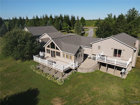 Stunning custom-crafted home on 4.7 private acres in the highly sought after Cazenovia School District. Set back from the road in a peaceful country setting. From the moment you enter, the attention to detail is evident. The open kitchen features custom maple cabinetry, granite countertops, island, custom lighting, and a pantry. Directly from the kitchen you can step into the large living room with hardwood floors and also into the breathtaking great room that blends craftsmanship, comfort, and elegance. Soaring cathedral ceilings showcase custom woodworking, creating a sense of grandeur and warmth. Thoughtfully designed custom lighting enhances the architectural beauty and highlights every detail. A striking floor to ceiling stone fireplace anchors the space, offering both visual impact and cozy gathering spot. The wet bar with copper inlay adds a refined touch, perfect for entertaining or unwinding at the end of the day. Expansive windows and a sliding glass door frame picturesque views and lead directly to your private deck, or to your enclosed hot tub seamlessly connecting indoor and outdoor living. This is a room where luxury meets livability ideal for both quiet evenings and memorable celebrations. Of course it doesn't stop there. After a long day retreat to the luxurious primary suite, thoughtfully designed for comfort and style. Enjoy the generous walk-in-closet and a beautifully appointed en-suite bath with double granite vanities and a serene atmosphere throughout. A sliding glass door opens to you private deck, where beautiful views provide the perfect backdrop for morning coffee or evening relaxation. This home has so much more to offer, like the mud room, office, first floor laundry, game or work out room, brick patio, attached two car finished and heated garage. Plus an amazing insulated and heated oversized 8 car garage complete with car lift and second floor with endless possibilities! All this and its just a 15 minute ride to Wegmans in Dewitt. Schedule your showing today! 2025-10-23