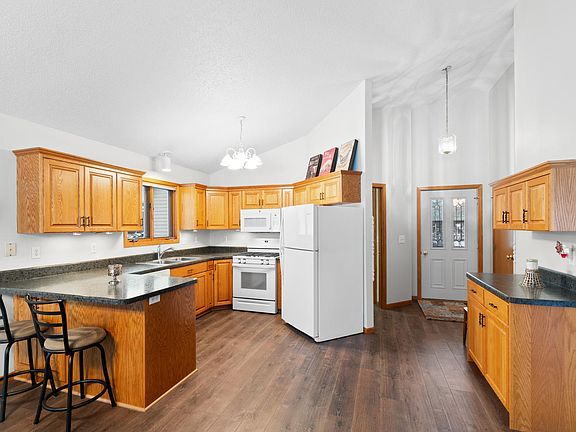Enjoy carefree living in this custom built Westbrook Estates home. Spacious two bedroom two bath home with vaulted ceilings. Brand new Mohawk Pure Tech Mountain Ridge Oak Plank flooring in most of this home! This home has all of the living facilities on one floor! Open floor plan with custom Oak cabinets, sunny 4 season porch and main floor laundry and back yard patio. All appliances included as well as the washer and dryer, air to air exchange and water softener! Take a walk along the private path in the safe park like setting and enjoy relaxing next to the beautiful landscaped pond. Have fun entertaining and grilling in the large gazebo next to your home (for the private use of association members). Association dues also includes snow removal, even shoveling up to your door, lawn care, sprinkler system, weed and feed, and garbage service. Great location in the association with quiet wooded views across the road for more privacy. Plus great location near downtown stores, the YMCA, churches, and the DATA walking/biking trail!