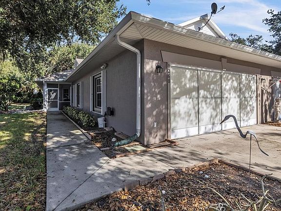 FURNISHED! Welcome to Heritage Oak Park—one of Port Charlotte’s most sought-after gated communities, known for its majestic mature oak trees and vibrant, active lifestyle. Situated on the left side of a well-kept duplex, the villa features its own spacious two-car garage, a wide driveway, and lush mature landscaping that enhances its charming curb appeal. Stately trees provide natural shade, while a thoughtfully designed garden bed creates a serene and welcoming front entry. Inside, this lovely 2-bedroom, 2-bath villa offers 1,561 sq. ft. of well-planned living space, ideal for those seeking a low-maintenance lifestyle in a peaceful community. Step into a bright, open living area with vaulted ceilings, neutral tile flooring, and large sliding glass doors that lead to the screened lanai overlooking tranquil greenery. Multiple windows flood the home with natural light, and a ceiling fan adds both style and comfort. The spacious living room flows seamlessly into the dining area and kitchen. Enjoy cooking and entertaining in the well-appointed kitchen featuring crisp white raised-panel cabinetry, modern appliances including a new range, expansive countertops, a built-in desk area, and a raised breakfast bar with pendant lighting—perfect for casual meals or social gatherings. The split-floor plan ensures privacy. The primary suite has private lanai access and large walk-in closet. Step into this thoughtfully updated primary bathroom featuring a spacious dual-sink vanity with modern rectangular vessel sinks, sleek countertops, and abundant drawer and cabinet storage. A large, framed mirror and contemporary lighting create a bright, inviting atmosphere. The walk-in shower offers a clean, modern tile finish with built-in shelving and an easy, open entry. The two guest bedrooms are generously sized and offer versatility for family, visitors, or a home office and share a full bathroom. Enjoy the Florida lifestyle with two screened outdoor spaces—a cozy front porch and a peaceful back lanai, ideal for relaxing, reading, or entertaining. Additional highlights include a new roof (2019), new HVAC (2021), hurricane shutters, an indoor laundry room with pantry and cabinetry, and a two-car garage. Residents of Heritage Oak Park enjoy maintenance-free lawn care and resort-style amenities, including a sparkling pool, clubhouse, fitness center, tennis courts, and scenic walking paths beneath the community’s signature oak canopy. Perfectly located near shopping, dining, medical centers, and just a short drive to the Gulf beaches, this villa offers the ideal combination of comfort, convenience, and classic Florida charm. Experience the peaceful, oak-lined beauty of Heritage Oak Park—where every day feels like a getaway. **PLEASE ENJOY THE 3D INTERACTIVE VIRTUAL TOUR ASSOCIATED WITH THIS LISTING**