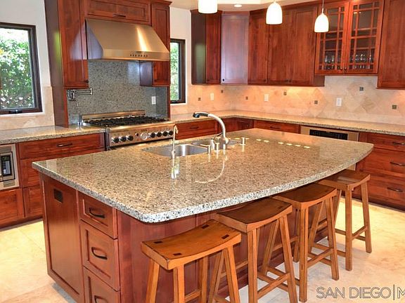 Beautiful 2005 rebuilt home in the prestigious south of Pomerado area. 4 bedrooms, 4.5 baths, plus oversized loft / media room and 3 car garage at 3355 sq.ft. Gourmet chefs kitchen w/granite counters, upgraded appliances w/dual full size refrigerator/freezer and walk-in pantry. Laundry/mud room combo. Wired for complete house audio and security system. LR features vaulted ceiling w/stone fireplace. Convenient downstairs master bedroom w/fireplace & dual walk-in closets. Travertine throughout first floor and hardwood on second floor. Ceilings fans in every room. The private patio area is entertainers dream w/built-in BBQ area. Walk to community pool, tennis and pickle ball courts. No smoking. Renter responsible for gas, electric and water. Last month rent due upon signing of lease. Small dogs allowed.