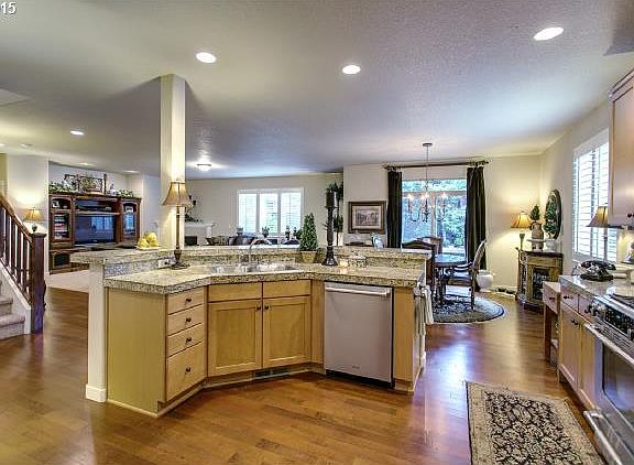This Has It All! 5 Bdm+Den & 3 Ba Home. Great Room Layout & 9' ceilings! Kitchen: Island w/Eating Bar, Pantry, Granite & Stainless Steel Appliances. Hardwood flrs on Main. Bdm/Den next to Full Bath on Main. Master Suite w/Vaulted Ceilings, Fireplace & HUGE w-in closet! Soak tub, Shower & His/Her Sinks. All Lg Bedrooms. Entertainers Backyard w/Patio & Hot Tub. Sprinkler Sys. Huge Bonus or 5th Bdm upstairs. Like New Built in 2008.