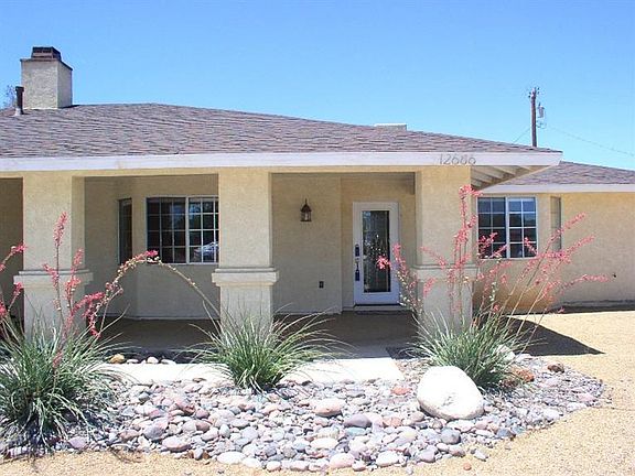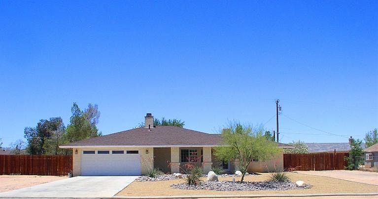 Better Be First Today! This Apple Valley home won't wait at $159,900! 3 Bedrooms all with walk-in closets and ceiling fans, 2 bathrooms, 1,349 sq. ft., built in 1986 but has been updated with beautiful tile flooring, refaced fireplace in the living room, granite counter tops & custom back splash in the kitchen with stainless steel appliances even the refrigerator is included plus walk-in pantry. Dining Room off of kitchen with sliding glass door to back yard. Guest Bathroom with granite counter top. Alarm System. Attached 2-car garage with opener and remotes included. Newer Composition Roof. RV access. Covered front porch to enjoy the sunrise. Desert Landscape in the front yard. Covered back patio to enjoy the sunsets. Fully fenced back yard with separate fenced side yard. A/C plus Evaporative Cooler. Close to schools and shopping. Call for your appt. today!