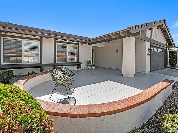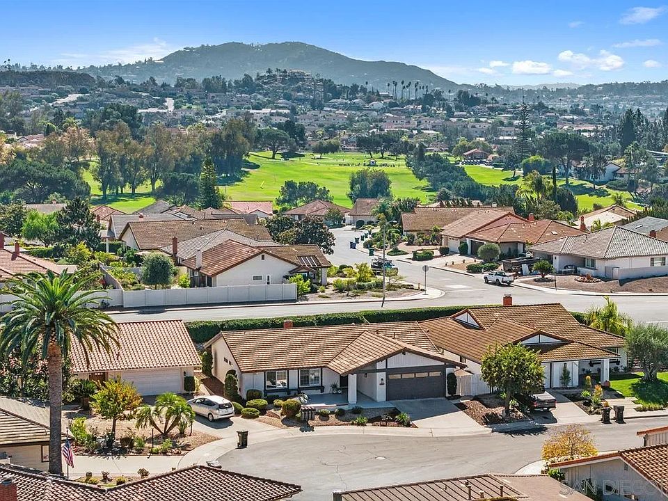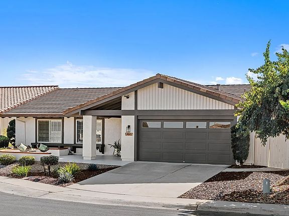 ***Gorgeous Completely Remodeled Home Tucked Into a Quiet Cul-de-Sac in Rancho Bernardo's Desirable Oaks North 55+ Community***This single story home offers the perfect blend of modern comfort and resort-style living! Relax and enjoy mountain views from the front veranda.***Located less than a mile from the Community Center and just one mile from Bernardo Winery, the home provides the ideal balance of retreat-style privacy and convenient access to some of RB's best amenities.**The fully renovated interior showcases airy vaulted ceilings, luxury wood vinyl plank flooring, and recessed lighting throughout. In the chef's kitchen, you'll find custom Shaker cabinetry, quartz counters, and ceiling height designer tile backsplash. It also features high-end stainless appliances and an eat-in peninsula with extra storage which seamlessly articulates the kitchen and dining areas.**The open floor plan offers distinct living & family rooms ideal for entertaining and relaxing. Both bathrooms are fully remodeled with designer countertops, tiles, lighting, flooring and fixtures.***The primary suite includes dual closets with mirrored doors, dual sinks and a walk-in shower. The 2nd bathroom provides a deep soaking tub.**Beautiful backyard views enhance the tranquility of the living areas and invite into the private oasis. Thoughtful low-maintenance landscaping with lush plantings and multiple patio areas are perfect for dining and entertaining.**Enjoy vacation-like living all year with access to Oaks North CC offering a gorgeous, lush 27-hole golf course and amazing Resort-Style Amenities!