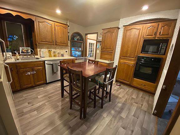 The beautiful oak kitchen features tons of cabinets, corian countertops, and includes the refrigerator, updated built in stove/oven, plus dishwasher. Lovely hardwood flooring in the living room and bedrooms. Living room offers a brick woodburning fireplace. Basement is partially finished with a 3/4 bath. Great shade trees in the front yard, and a patio in the backyard. The oversized garage is perfect for storing your extra outdoor items or would make a great workshop. Furnace in the garage has never been used by this owner. New shingles gutters, and downspouts on the house. New shingles on the garage.