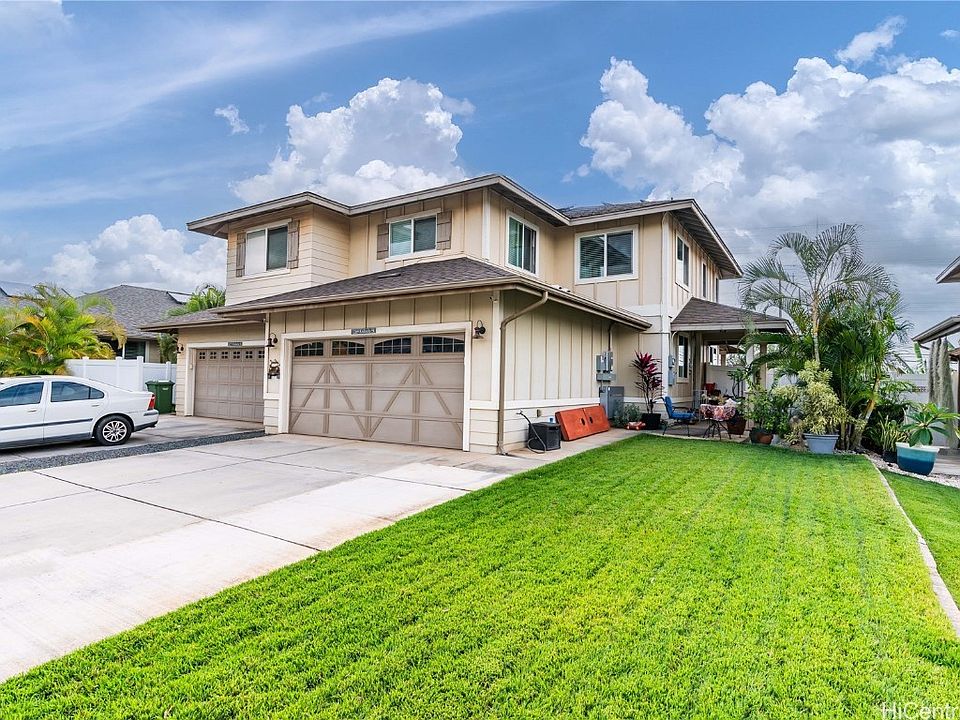 Beautiful 3 bdrm, 2.5 bath single family home in the desirable community of La Hiki at Mehana. Very low HOA fees. (15) PV panels (owned), (1) Solar Battery, and Solar Water Heater to maintain low elec bill. Home features an open floor plan, walk-in closet primary suite, stainless steel appliances, walk-in pantry, central AC, and luxury vinyl plank flooring throughout. 38' x 10' extended back lanai to enjoy your backyard with no neighbors behind. Large driveway and 2 car garage for parking options. Mehana at Kapolei community offers a playground, a swimming pool w/recreation center, dog park, basketball court & greens park! Conveniently located near Ka Makana Alii mall, H-1, restaurants, beaches, schools, shopping, and dining. Property is located in the heart of Kapolei, also known as the "Second City" on Oahu.