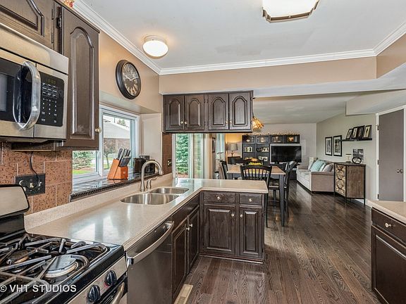 As soon as you enter this home you just know it has been well cared for. Original owners have raised their family here and it is now time to downsize. Your opportunity to make this wonderful home and neighborhood yours. Lovingly cared for and updated (see attached list) Windows and patio doors have been replaced; as have roof, siding and driveway. First floor has newer carpet and hardwood. Living and dining rooms have crown molding. Built-in cabinets in Dining room. Kitchen has refinished cabinets, corian counter tops and newer appliances. Ample eating area with extra-wide patio doors. Open to spacious family room. Upgraded White trim and doors; gray walls. Upper level has an expansive master with ensuite which is beautifully updated. Crown molding and new trim; box window and full wall of closets; hardwood flrs. Bedroom 2 has walk-in closet, crown molding and hardwood. Bedroom 3 has wood floors. Bedroom 4 is currently an office. Hallway has a laundry closet. Basement is finished with a bonus room with closet; Large rec. room with built-in counter/cabinets. Corner lot is a quarter acre; well landscaped plus patio. Bus service to A-rated schools.