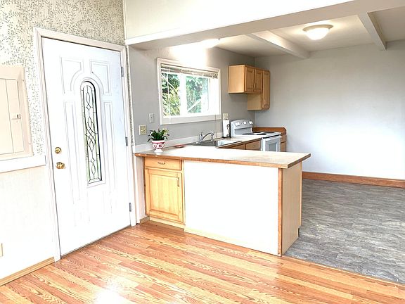Updated home, with Eastern views of the water, and mountains. The wood burning stove works great and is very efficient. The large room downstairs has a half bath, and could be used as a third bedroom.