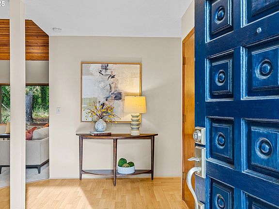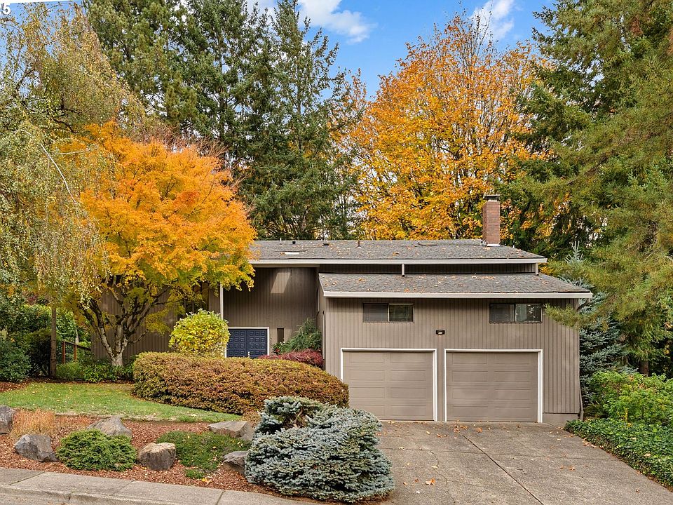 Stylish Contemporary located in coveted Red Fox Hills Neighborhood on quiet cul-de-sac bordering Tryon Creek Park, Walking Trails and near charming Hide-a-way Park and Forest Hills Elementary. Close to downtown LO. This timeless modern style features clear cedar vaulted ceilings in Living Room & Loft area. The clean contemporary lines accommodate many design styles. This is a great floor plan with a private main floor office with built-ins, vaulted living room with stone masonry fireplace adjacent to formal dining room. The kitchen with painted cabinetry, is light and bright with views of beautiful backyard and park. The outdoor setting is spectacular with privacy, expansive deck, basketball court and mature plantings. The Kitchen/Family Room is accessible to the level deck and backyard and has a second fireplace, and built-ins.A main floor laundry and separate bonus room above the garage add livability. The upper level has 3 bedrooms, a primary suite with a deck overlooking the backyard and two additional expansive bedrooms. The Primary ensuite boasts mirrored closets with ample storage and a full bath. An additional hall bathroom services the two additional bedrooms. A cozy loft/reading room overlooks the vaulted living room. Great Style and Location close to schools, town and beautiful parks and trails. A Gem.