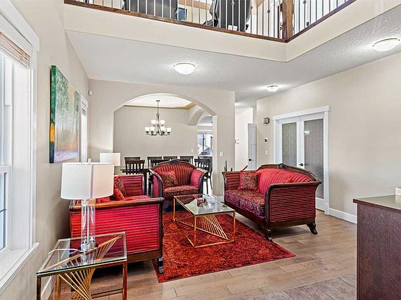 Stunning and expansive 6-bedroom, 2-storey home in the sought-after community of Sherwood! Perfectly located near all the amenities of Beacon Hill, this home impresses from the moment you enter with soaring vaulted ceilings, modern lighting, beautiful hardwood, and elegant architectural details. The main floor offers a formal living and family room, a large dining area, and a gourmet kitchen with granite counters, euro-island, and high-end SS appliances. Upstairs features two ensuites, including a spa-inspired master retreat with a huge walk-in closet and a bright bonus room. The fully developed basement includes two good-sized bedrooms, a wet bar, gym area with quality flooring, and a separate entrance—ideal for extended family or investors. Additional highlights include two furnaces, five bathrooms, 9-ft ceilings, and stylish stone feature walls. A perfect blend of elegance, comfort, and investment potential!