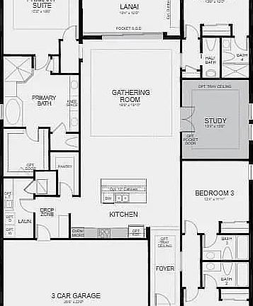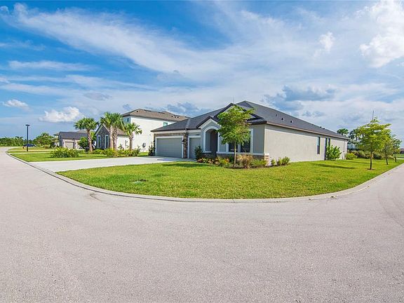 This stunning corner house offers the perfect blend of comfort & style. With its spacious 2,921 square feet, you'll have plenty of room to entertain or relax. Enjoy the luxury of four generously sized bedrooms, each with its own private bathroom. Lg Study & 1/2 bath. The open-concept living area features a gourmet kitchen, perfect for hosting gatherings. Step outside onto your covered lanai for breathtaking views and peaceful outdoor living. The primary suite is a true retreat, boasting a spa-like bathroom with a garden tub, walk-in shower, & dual vanities. Hurricane-proof windows & an alarm system provide added peace of mind.