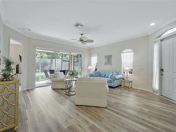 MOVE-IN READY PARADISE! Stunning Villa with SOCIAL MEMBERSHIP in premier country club community. INCREDIBLE VALUE ALERT! This gorgeous 2-bedroom + den (perfect for 3rd bedroom!) attached villa at prestigious Hunters Ridge Golf & Country Club is your gateway to resort-style living at an unbeatable price! NICELY UPDATED, FURNISHED & MOVE-IN READY: Brand new luxury vinyl plank flooring throughout - Stunning brand new quartz kitchen countertops - Brand new 3-ton AC system (September 2025) - 1,700 sq ft of comfortable living space - 2-car garage for convenience. PRIVATE SANCTUARY: Unwind on your screened lanai overlooking serene preserve views – your own slice of tranquility! Soaring volume ceilings create an airy, spacious feel while storm shutters provide peace of mind. RESORT LIFESTYLE INCLUDED: Your Social Membership unlocks endless amenities: sparkling community pool with bar service, clubhouse dining, tennis courts, activity center, and so much more! PRIME LOCATION ADVANTAGES: Just 6 miles to pristine Bonita Beach - Minutes from RSW International Airport - Excellent shopping and dining nearby - Exciting Bonita Midtown development coming soon with 315 shops/restaurants, hotel, and residences just 5 minutes away! SMART INVESTMENT: Financially stable community with low fees and NO CDD assessments means more money in your pocket! This is your chance to own a piece of paradise at the BEST VALUE in Hunters Ridge. Don't let s gem slip away!