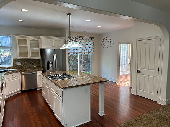 - The property also has a sound system and a jetted tub. The property also includes a sound system, wet bar, formal dining room, and kitchen with an island, pantry, built-in oven, and microwave.