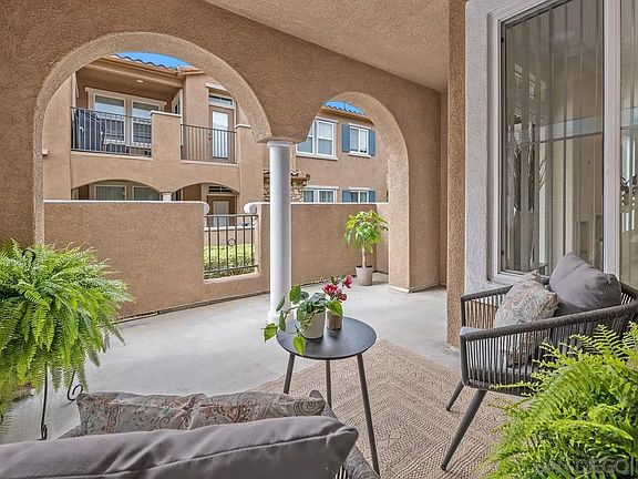 Don’t miss this chance to own a single-level condo in the highly desirable Savannah Terrace community. This ground-floor unit is tucked away in a quiet rear location, offering added privacy & tranquility. Enjoy a spacious open floor plan featuring a cozy living room with fireplace, elegant crown molding, tile flooring, & a generous covered patio with storage. The kitchen is equipped with granite countertops & includes a stainless steel refrigerator. Additional highlights include central air conditioning, a 2-car garage with direct access to the unit, & interior laundry with washer & dryer included. Located within walking distance to Morning Creek Elementary School, Sabre Springs Neighborhood Park, & Van Dam Peak trailhead. Just minutes from I-15 freeway and the heart of the Poway community. The beautifully maintained Savannah Terrace community offers resort-style amenities, including a sparkling pool, bubbling spa, night-lit tennis court, BBQ pavilion, fitness center, basketball court, indoor racquetball court, & more. Located within the award-winning Poway Unified School District.