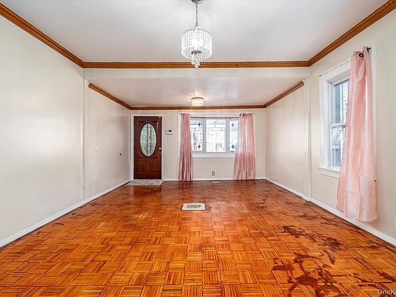 Welcome to 127-20 107th Avenue in South Richmond Hills! This beautiful home on a corner lot offers spacious living with a bright, open layout. The first floor has original parquet floors throughout the living room and dining room, with crown molding, and a beautifully renovated kitchen with stainless steel appliances and a half bathroom. The living room has a bay window and large windows throughout the home. The three upstairs bedrooms have hardwood floors and a full bathroom with a bathtub. The primary bedroom and the other two have hardwood floors and oversized windows. the attic is finished and has room for ample storage. The finished basement has a separate entrance, a full bathroom, and laundry. The fenced-in backyard has a cement patio, a covered storage area, and a garage with an automatic door opener. The home has Natural Gas heating for energy efficiency.
