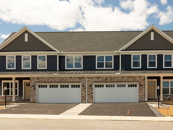 Quick Move-in! Situated near scenic Toftrees, and located within the award-winning State College School District, Kingston Village offers maintenance-free living in a premium location just 3 miles from Beaver Stadium and Downtown State College. This brand new Hartsfield carriage home features a grand farmhouse style exterior and includes a convenient floor owner's suite. Inside, nine-foot ceilings establish an open and warm atmosphere. Classic pocket doors to one side reveal a private home office. Beyond the powder room and first-floor laundry, the entry opens dramatically to the vast great room. Vaulted ceilings above, hardwood floors below, and a gas fireplace with stone surround combine for breathtaking visual impact. Gather in the open dining area and gourmet kitchen featuring granite countertops, stainless appliances and upgraded cabinetry. An over-sized island expands the kitchen's functionality. Enjoy outdoor entertaining on the deck that includes stairs to the rear yard. The spacious owner's bedroom includes a walk-in closet and luxurious bath with double sinks, ceramic tile shower with glass door, and a linen closet.An elegant oak staircase with arts and crafts railings lead to the second floor. At the top of the stairs is a large loft area that overlooks the great room below. Two additional bedrooms share a bath while providing each its own private sink area.Storage abounds throughout the home with walk-in closets in every bedroom, a walk-in kitchen pantry, entryway