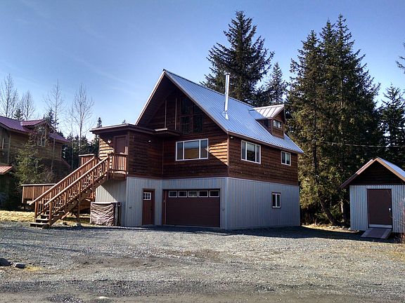 Sip on a cup of coffee and enjoy the view from the living room or HOT TUB! Corner lot (.31acre) Arctic entry, large bedrooms, small half bath in upstairs bedroom. Levelor cordless room darkening blinds. New paint and fixtures throughout. 2 level deck with hot tub on steel pilings. High efficiency wall furnace (main heat), Wood stove, and electric baseboard(back up). Gas on demand Rinnai hot water heater. 850sqft garage with high efficiency gas unit heater. Commercial grade metal siding. New metal roof in 2014 and conventional foundation in 2012. City sewer and water. RV parking and large matching storage shed. Pre qualified buyers please call for appointment. *Kitchen pre plumbed for future remodel