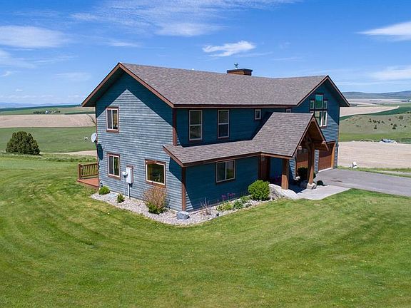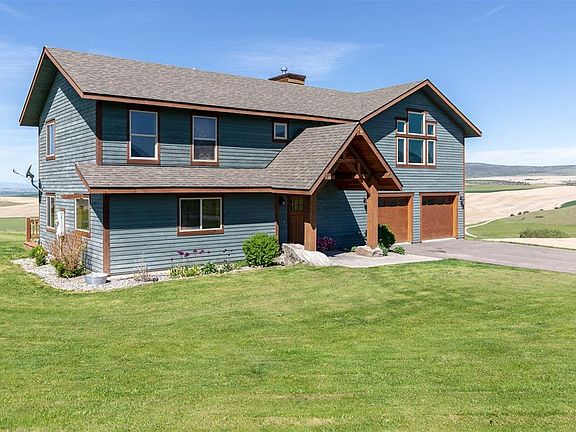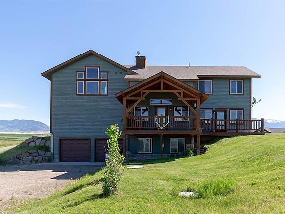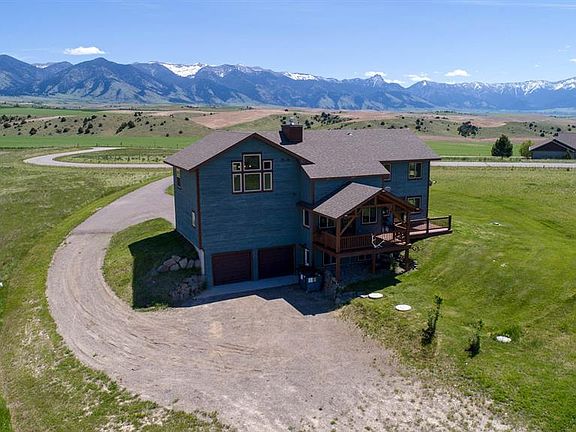 This exquisite custom home rests on a 1.53-acre corner lot in Antelope Ridge with never-ending views of the Bridger and Gallatin mountain ranges. Vaulted tongue-and-groove ceilings paired with an expansive covered deck reflect the rugged romanticism of Montana while indoor amenities bring out its modern luxuries. Move-in ready, this tri-level, three bedroom, two-and-a-half bathroom home features Brazilian slate tile flooring, circle sawn fir floors and a stone fireplace that stretches to an open balcony overlooking the great room. Stainless appliances highlight the spacious kitchen that boasts recessed lighting in addition to ample pantry and storage space. An unfinished walkout basement with egress windows welcomes new owners to make it their own while the four-car, two-level garage is the ideal workspace. Zoned for the Manhattan school district, this irrigated property borders state land and is a short 10-15-minute commute from the Bozeman Yellowstone International Airport.