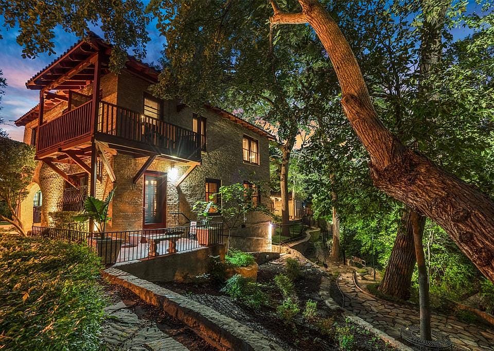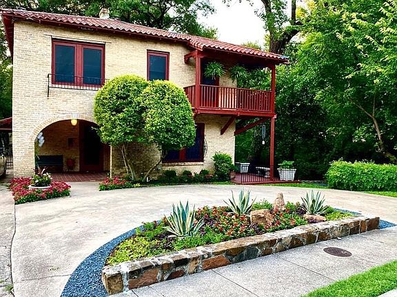 A BECKLEY CLUB ORIGINAL - Built in 1926, this 3-level home is one of the first four ever built in the neighborhood. Much has been written about this property over the years...own of piece of Oak Cliff history. Enjoy the rolling hills, tree-lined streets & quaint one-lane bridges. Free-roaming peacocks too! Beautifully-restored Spanish Eclectic with lots of vintage appeal - original wood flooring, cast iron stair railing, original butler's panty. Plantation shutters, custom blinds. Upgraded cabinetry, granite countertops, brick backsplash & stainless appliances in kitchen. Primary bedroom, with fireplace, opens to a small balcony. Premium Ludowici roof tile. Zoned HVAC. Solar screens. Walkout basement. Storage shed, with electrical. Wood & wrought iron fencing. Two-car carport doubles as a party pavilion. Lush creek-side setting, terraced side yard, 3 flagstone patios, deck & trail. Minutes to downtown and Bishop Arts. Near Gateway Park, under construction. Owner is licensed agent. 2025-02-02