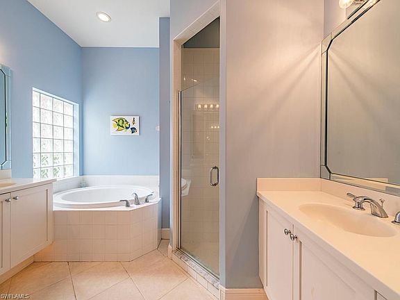 H.14533 Imagine the feeling of a gentle ocean breeze when you enter this bright and airy contemporary "Coastal"decorated home. The custom white quartz kitchen counter opens to the spacious living room area. Floors are tiled plus beautiful wood floors in all three bedrooms. There is also hurricane protection. A water view can be seen from the poolside which has a Northern exposure. Fountainhead is Vineyards very popular and friendly community of 70 single villa homes. There are minutes to Vanderbilt beach, the shops and restaurants at Mercado and easy access to Southwest Regional Airport. Vineyards Country Club offers a number of various memberships.