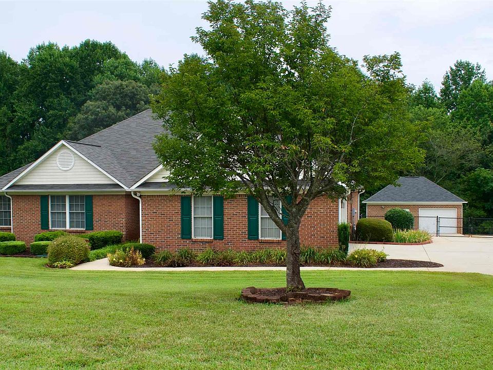 Welcome home to this all brick, 4 Bedroom, 2 Bath, single level home with screened porch, fenced backyard, attached 2 car garage PLUS a detached 26x26 3rd garage/workshop with 1/2 bath on 1.68 acres! This fantastic one owner home has been well loved and beautifully maintained to make it move-in ready and better than new! The established landscaping welcomes you to the front door which enters into a large foyer with a double coat closet. This leads to the Living Room with plenty of natural light, hardwood floors, ceiling fan, fireplace with gas logs and an easy flow to the other main living areas. The lovely Screened Porch with ceiling fan overlooks the large, fenced backyard which leads out to the 3rd Garage as well as the wooded area with a stream in the back of the 1.68 acre property. The Kitchen has a new GE refrigerator (which remains) as well as a newer dishwasher and garbage disposal. It is bright & airy, offers lots of work space and opens to the Breakfast Room on one end & Dining Room on the other end adding a nice flow for large gatherings. Access to the walk-in Laundry Room and the 2 car Garage are also off of this spacious Kitchen/Dining area. A hallway leads to the Master Suite with tray ceilings, walk-in closet, ceiling fan, and full bathroom with double vanity, separate shower and soaker tub. Around the corner are the 2nd, 3rd & 4th Bedrooms as well as another Full Bath offering plenty of options for sleeping spaces and office space. This awesome home also has been updated with a newer roof, HVAC and tankless water heater. The 3rd Garage is a great detached building with a garage door, walk-out yard door, A/C unit, water and power (110 & 220) plus a 1/2 bath to make it a great workshop! It has a separate septic system from the main house (for the 1/2 bath) and could also become a great workout space! Wi-fi enabled Irrigation system covers the front and back yards. Enjoy this established neighborhood zoned for District 5 Schools, near shops & restaurants with easy access to Hwy 290, Reidville Rd, I-85 & I-26.