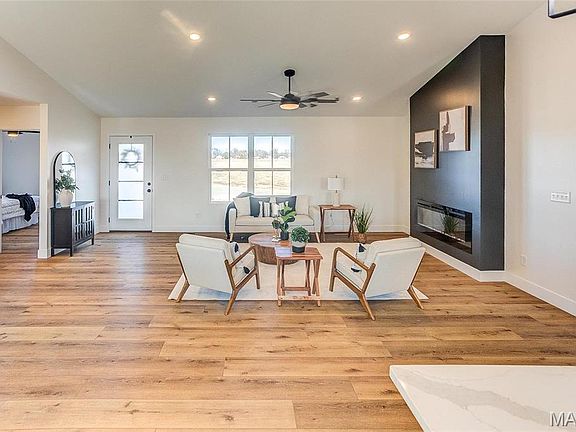 Cozy fireplaceMain-floor laundryElegant onyx showerSpacious center islandQuartz countertopsFull basementStylish vinyl plank flooring