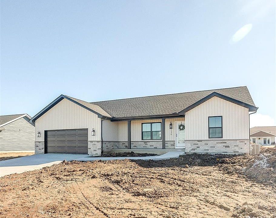 TO BE BUILT . Homes by Keller presents a stunning 3-bedroom, 2-bathroom, 1,624 sq. ft. ranch-style home designed for modern living. The open-concept kitchen and living area create the perfect space for entertaining, featuring vaulted ceilings with a cedar beam, a cozy fireplace, and stylish vinyl plank flooring throughout. The kitchen is a chef’s dream with quartz countertops, a spacious center island, a subway tile backsplash, and soft-close cabinetry offering ample storage. A stove, dishwasher, and microwave are included in the base price. Relax in the luxurious primary ensuite, which boasts a double vanity, a separate tub, and an elegant onyx shower. Enjoy the convenience of main-floor laundry. The full basement offers endless possibilities with an egress window and a full bath rough-in for future expansion. Don’t miss your chance to own a brand-new home in this highly sought-after community!