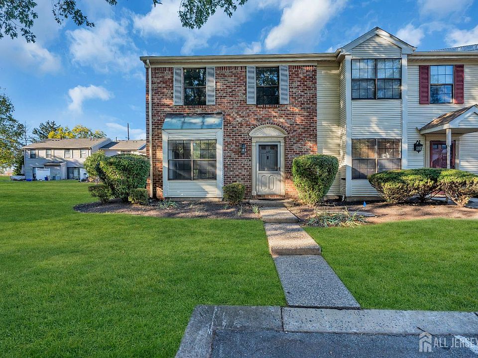 Beautifully renovated 2 Bedroom, 2.5 Bath 1,512 sq. ft. End Unit Townhome in desirable and conveniently located Society Hill. This townhome is the best location in the complex!! All new stunning kitchen with abundant, gleaming white, soft close, Shaker cabinets, quartz counter tops, new Frigidaire stainless steel appliances, and pantry. Each bedroom has a private bathroom. The back bedroom has a tub and the front bedroom has a glass-enclosed shower stall. Either bedroom can be used as a primary. Great closet space in both bedrooms. The back bedroom has a walk-in closet and the front bedroom has double closets. New gray vinyl plank flooring throughout the 1st floor & new carpet throughout the 2nd floor. New Washer/Dryer. Pull down Attic has floored storage space. New Central Air/Heating system with a new condensing unit. Hot Water Heater installed in 2019. The outdoor entertaining space in back has a partially covered Patio with two storage closets. This unit has the most spacious side yard in the complex. Low monthly HOA fee of $332. Inground Pool, Tennis Court and Play area are located next to the Club House. Two Pets are allowed. Society Hill is conveniently located near Rutgers' campuses, shopping, Rtes 287/18/1 and NYC train. Come visit today!