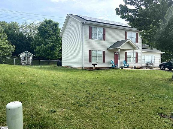 This one will not last! This 2800 sq. foot, 3 bedroom, 2 bath home located in Greer, has been remodeled over the last month. The owner has invested in new granite, carpet and a complete repaint of the entire interior, with the exception of the media room, which was freshly painted within the last couple of years. The owners have invested in a solar system that conveys with the home. It is paid for and not leased. What a great bonus to the lucky buyer of this property. The master has a full bath and a huge walk-in closet, along with new carpet. The back yard is completely fenced in with a separate area fenced for a pet. This beautiful home is within walking distance of Crestview Elementary School and less than 5 minute drive to Greer Middle and High Schools. 25 minutes to downtown Greenville and about the same to downtown Spartanburg. Playhouse does not convey with property and will be moved prior to closing. Storage building conveys with the property.