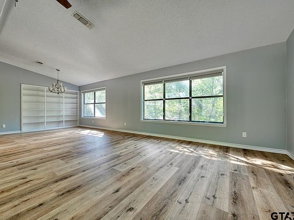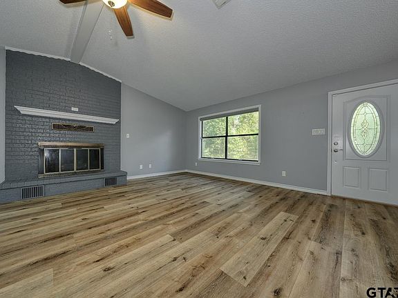 Welcome home to this beautifully maintained 2-bedroom, 2-bathroom, 2-car garage home offering 1,489 sq. ft. of living space in the highly sought-after, gated community of Hideaway Lake. Nestled on a quiet street, this inviting residence blends comfort, functionality, and timeless style – an ideal retreat for full-time living or a weekend getaway. Step inside to discover an open and airy floor plan designed for easy living and entertaining. The spacious living and dining areas are filled with natural light, creating a warm, welcoming atmosphere. The well-appointed kitchen boasts ample cabinetry, and generous counter space, making meal prep and casual dining a delight. The private primary suite offers a peaceful escape with a large closet and an en-suite bath featuring a walk-in shower and plenty of vanity space. A comfortable secondary bedroom and full bath provide room for guests, a home office, or hobby space. The home also features a convenient laundry area and additional storage to keep everything organized. Solar panels help keep your electric bill low. Enjoy outdoor living on your private lot, perfect for sipping your morning coffee or unwinding after a busy day while overlooking the peaceful backyard with mature trees offering shade and privacy. The attached two-car garage adds more storage and easy access. Living in Hideaway Lake means enjoying an array of resort-style amenities, including a 27-hole golf course, three sparkling lakes for fishing and boating, swimming pool, tennis and pickleball courts, clubhouse, parks, and 24-hour security – all just minutes from shopping, dining, and medical facilities in Tyler and surrounding areas. Whether you’re downsizing, purchasing your first home, or searching for a weekend retreat, this well-cared-for property offers a rare opportunity to experience the unmatched lifestyle of Hideaway. Schedule your private tour today and discover why so many love to call this community home!